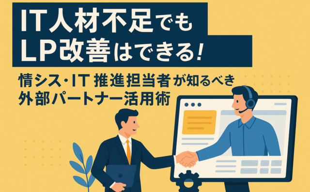 IT人材不足でお悩みの情シス・IT推進担当者必見。LP改善が進まない原因を解説し、外部パートナーの戦略的活用でLP成果を最大化する具体的な方法と成功事例をご紹介。貴社のビジネス成長を強力にサポートします。